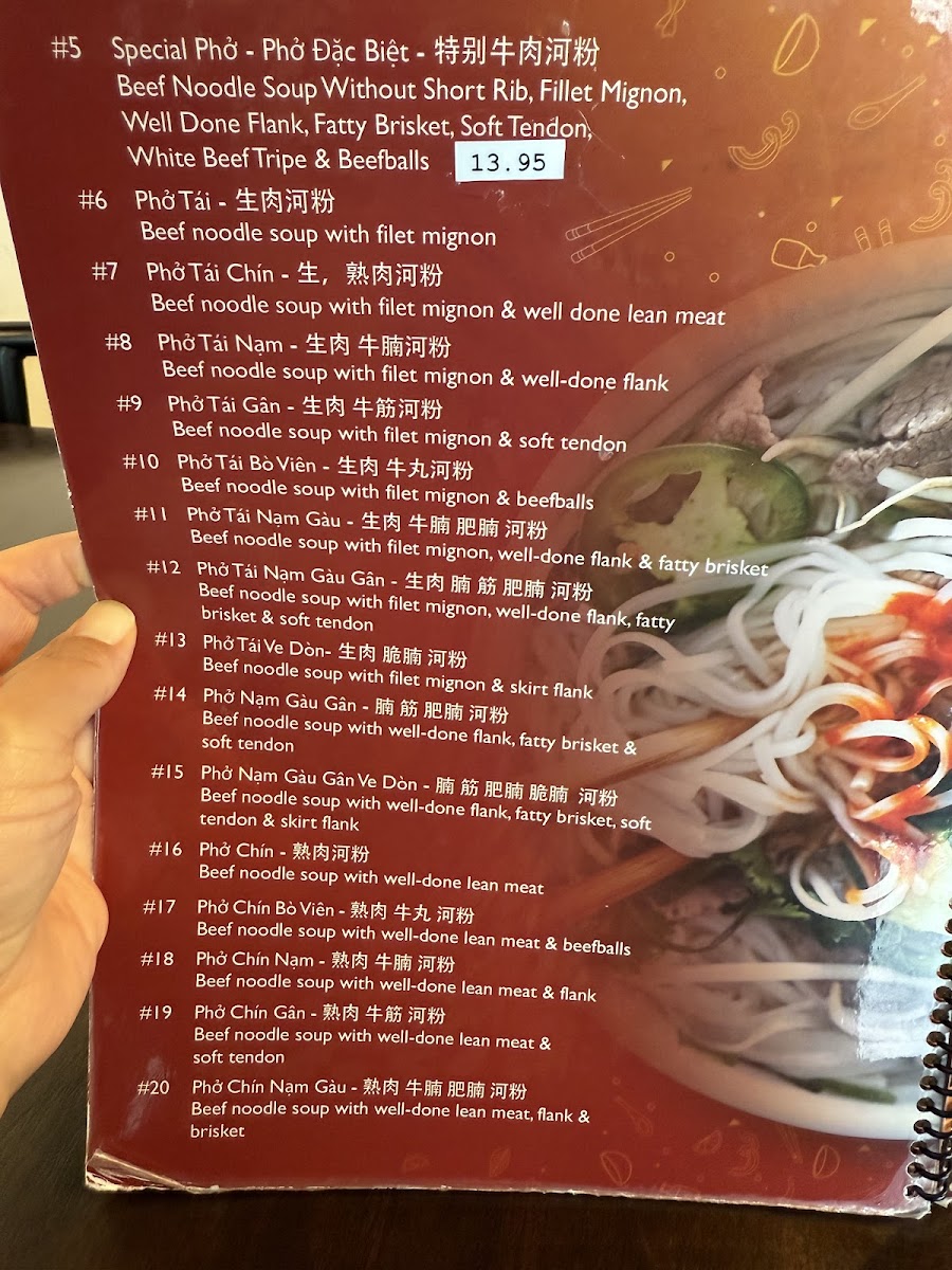 12. Pho Tai Nam Gau Gan / Filet Mignon, Well-Done Flank, Fatty Brisket, & Soft Tendon
